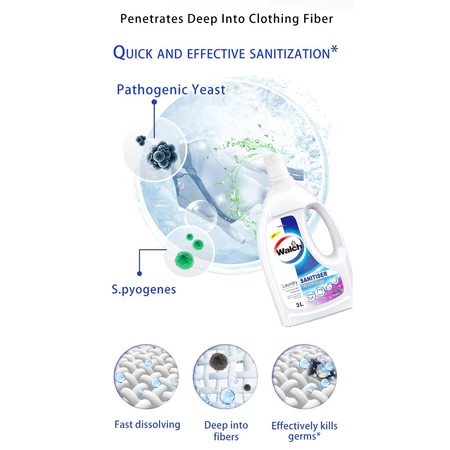 Walch® Laundry Sanitiser Disinfectant dissolves quickly during wash and thus is able to enter deep into cloth fibres to thoroughly sterilise your clothes. It also retains hygiene and clothes washed and suitable for indoor drying.