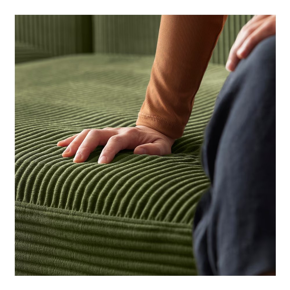 This cover is made from Samsala, an extra-wide-wale and strong corduroy fabric with soft comfort and an expression that adds character to the room.